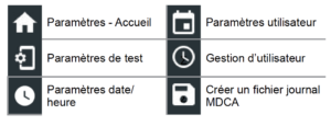 pour accéder aux paramètres de test par défaut. Appuyez sur les cases ou les icônes pour modifier les valeurs.