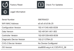 Use Version Information to display WiFi connection data the DSS Controller, Diagnostic Device, and CVG-2 Device software version information.